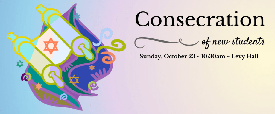 Families of students new to J-JEP this year are invited attend our Consecration service at 10:30 am in Levy Hall on Sunday, October 23. A cookie reception for new students and their families will immediately follow in Aaron Court. Please RSVP to Kate or via the evite you were sent.